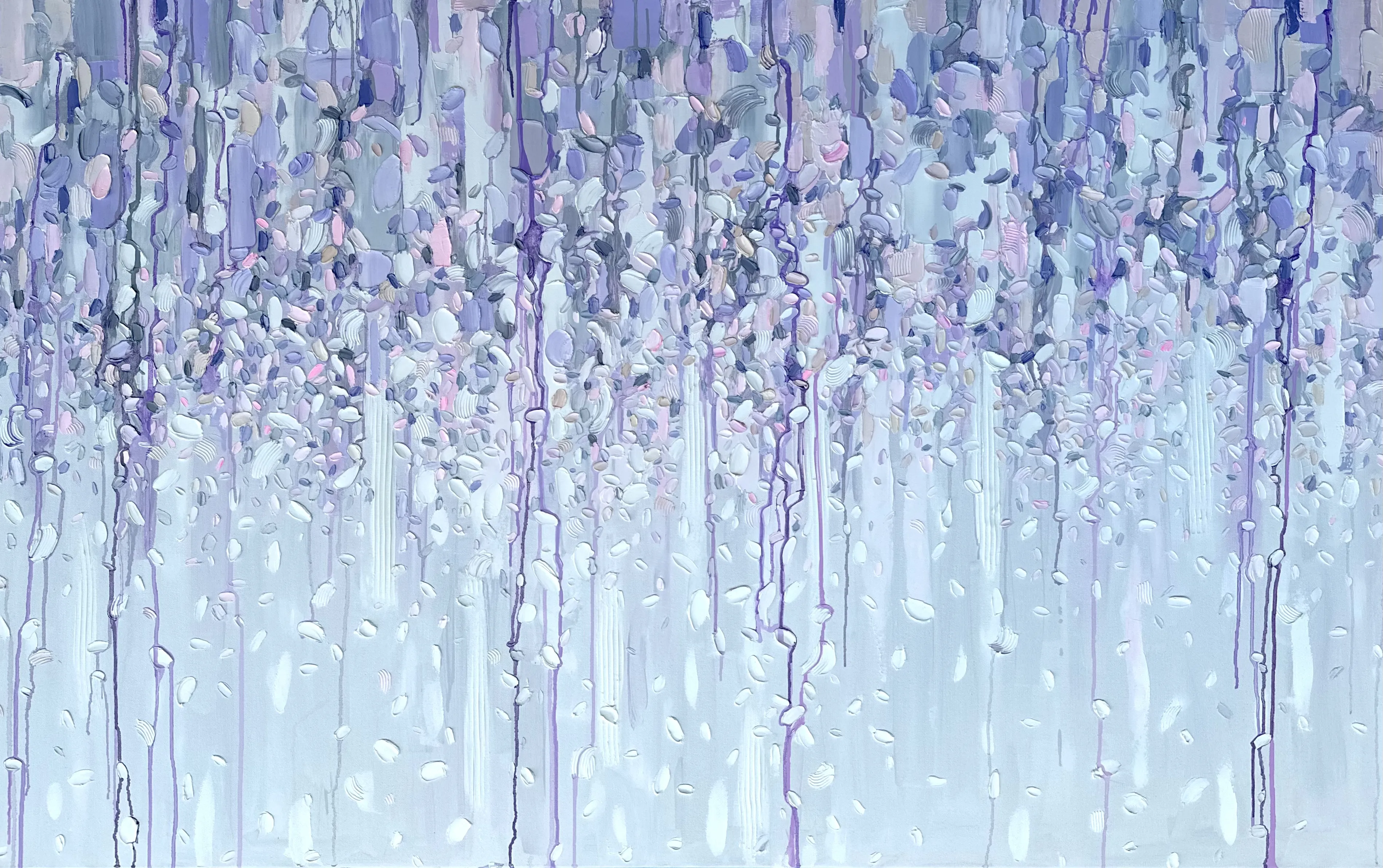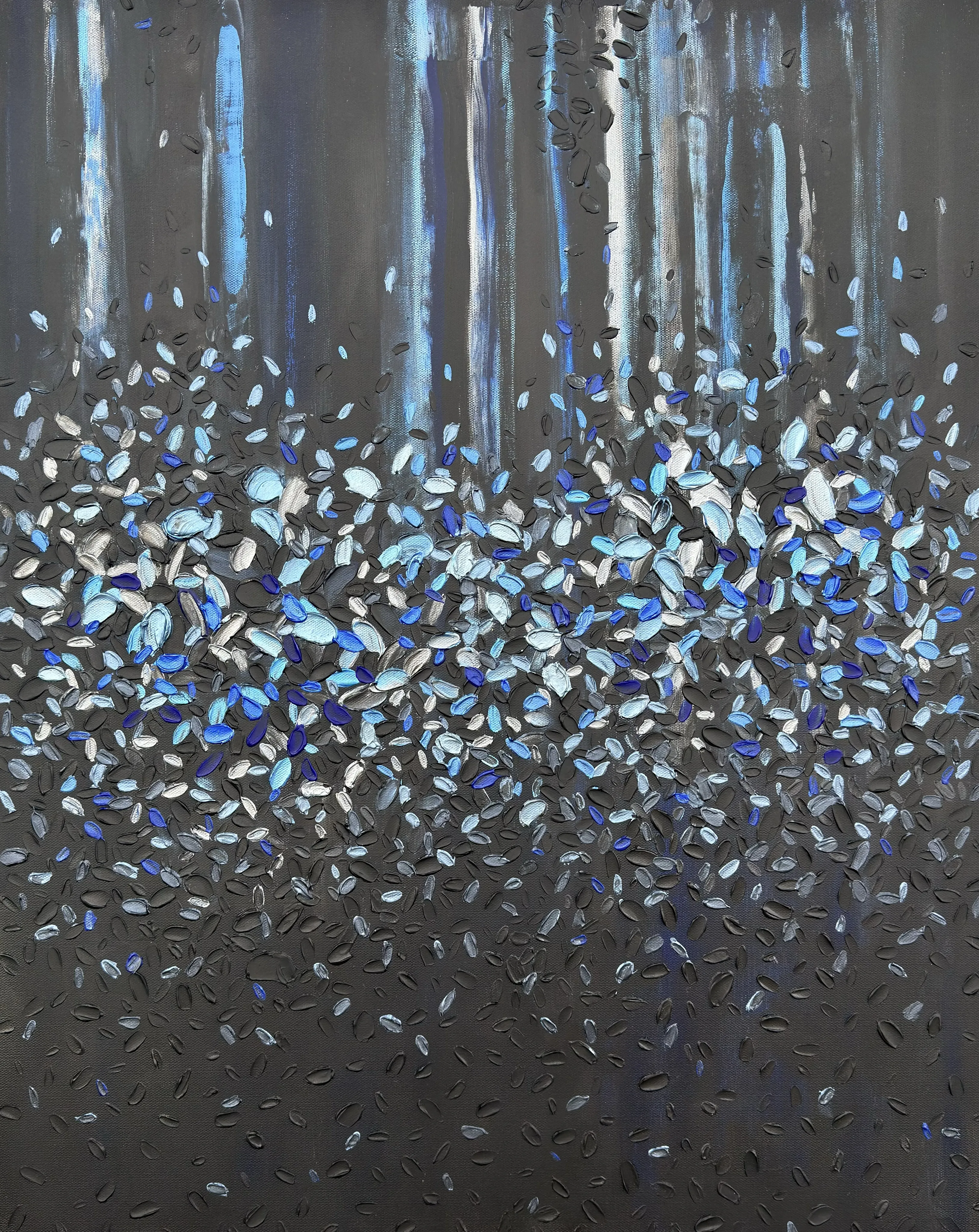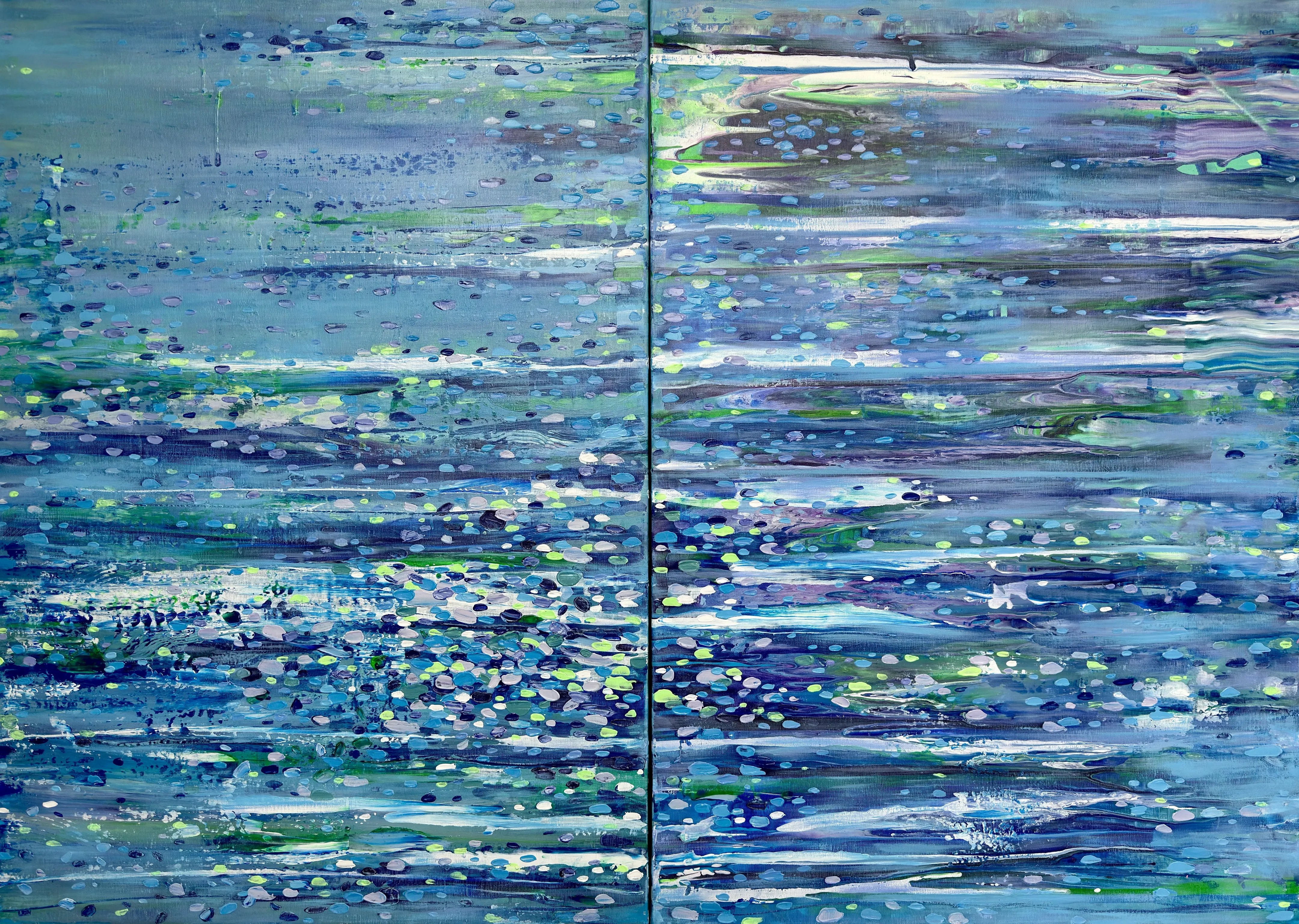 The series reveals colour as a living substance that evolves through movement, layered transitions, and the interaction of hues. Vertical flows and textured structures form chromatic fields with their own rhythm and direction. Colour acts as an active force: it shifts between states, generates new gradations, and defines the dynamics of each composition.