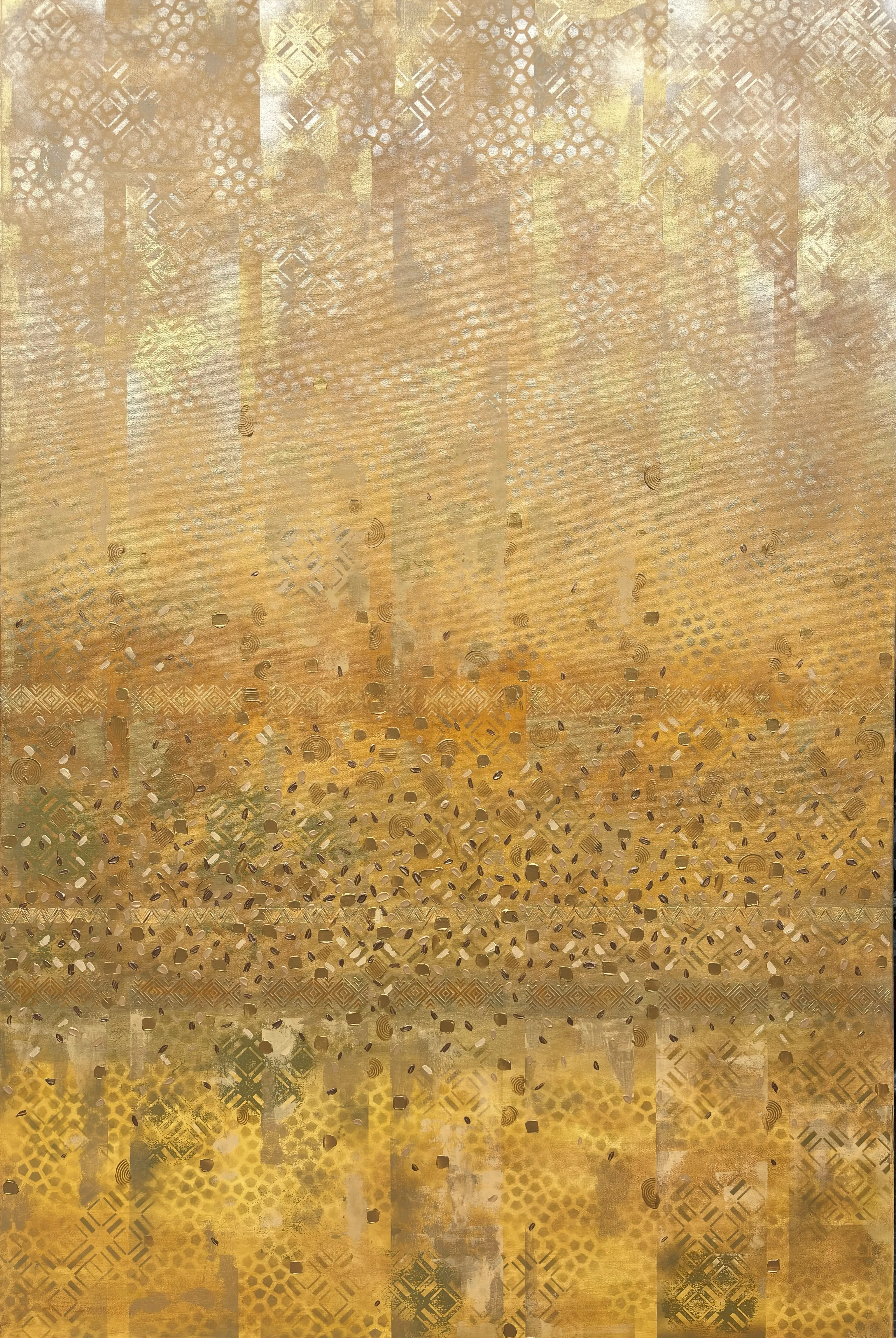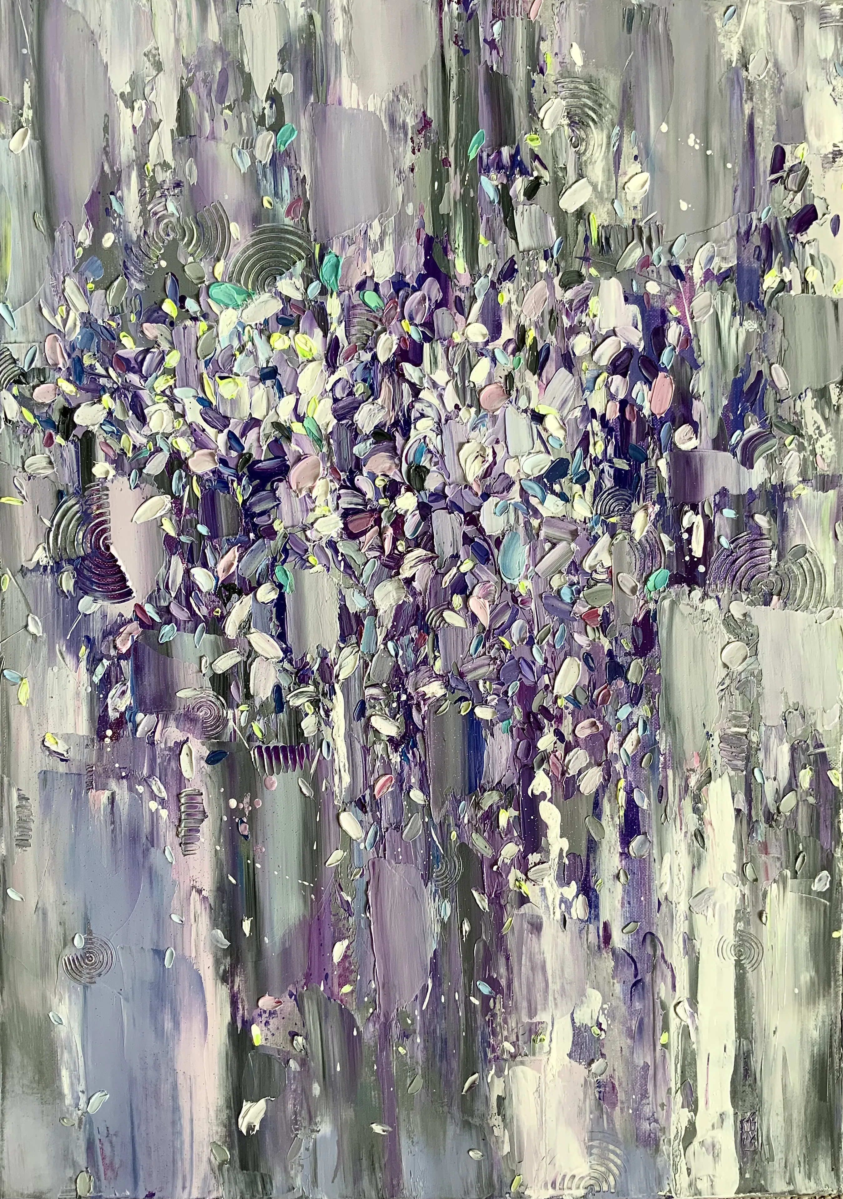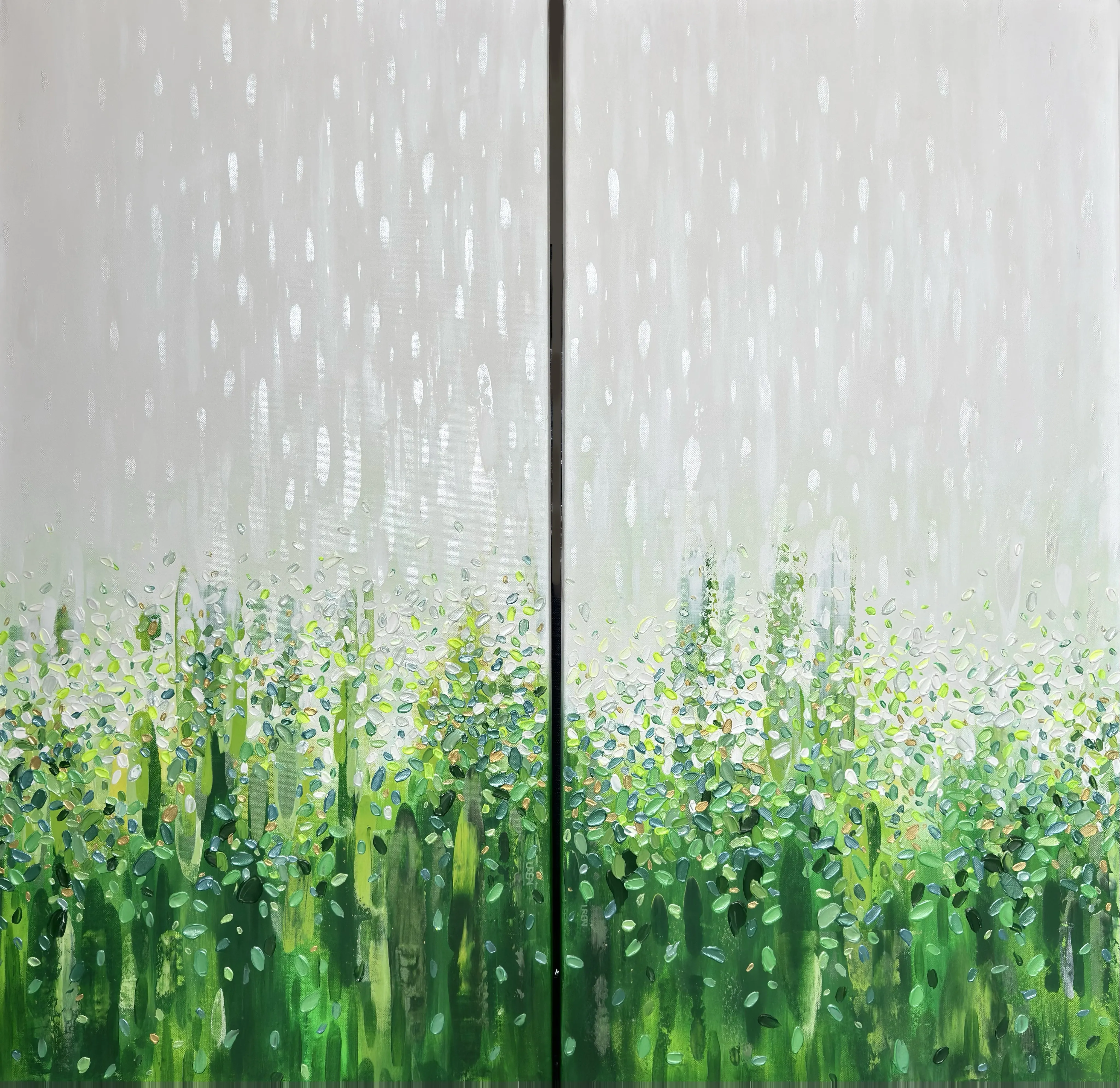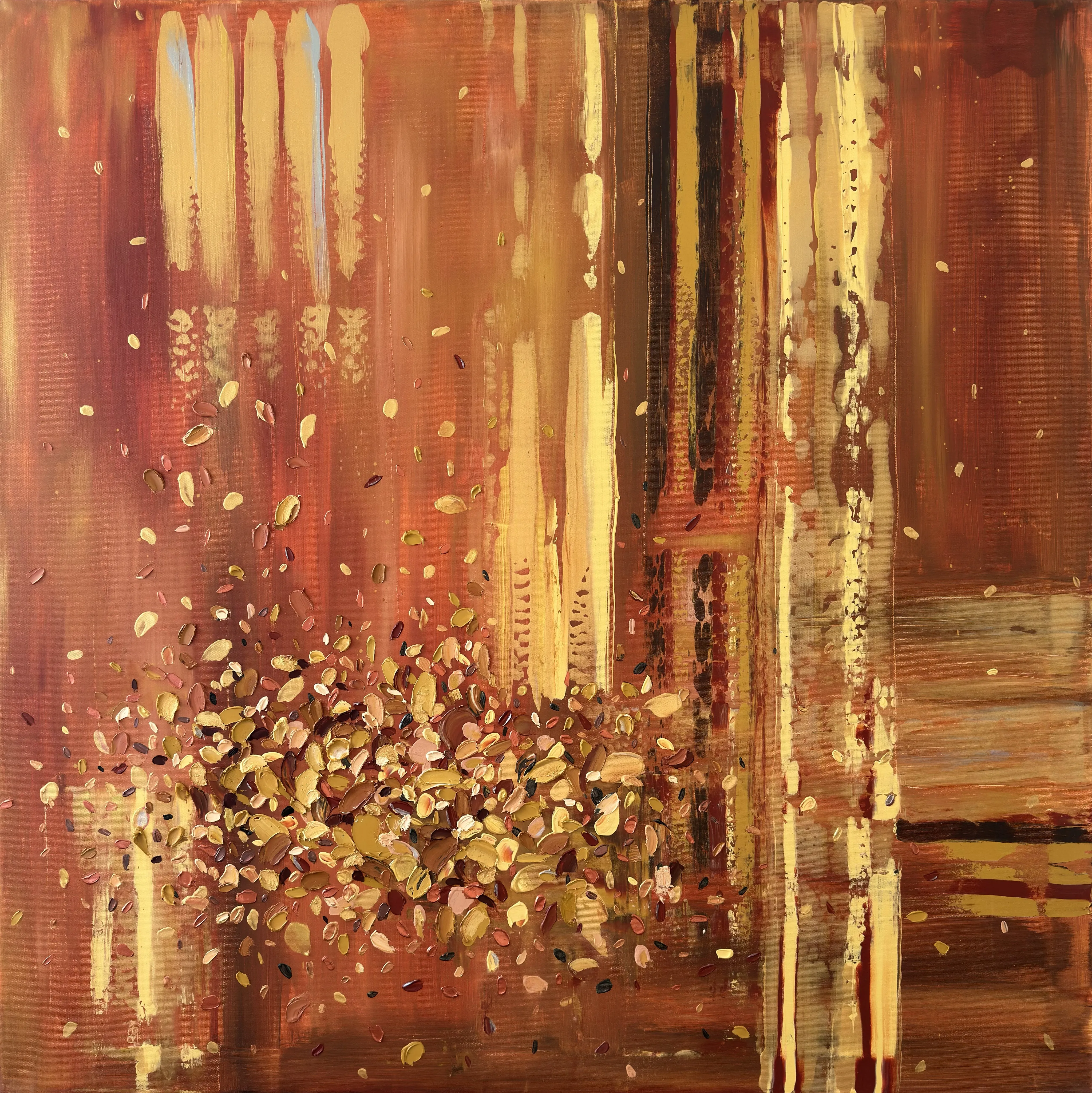The series reveals colour as a living substance that evolves through movement, layered transitions, and the interaction of hues. Vertical flows and textured structures form chromatic fields with their own rhythm and direction. Colour acts as an active force: it shifts between states, generates new gradations, and defines the dynamics of each composition.