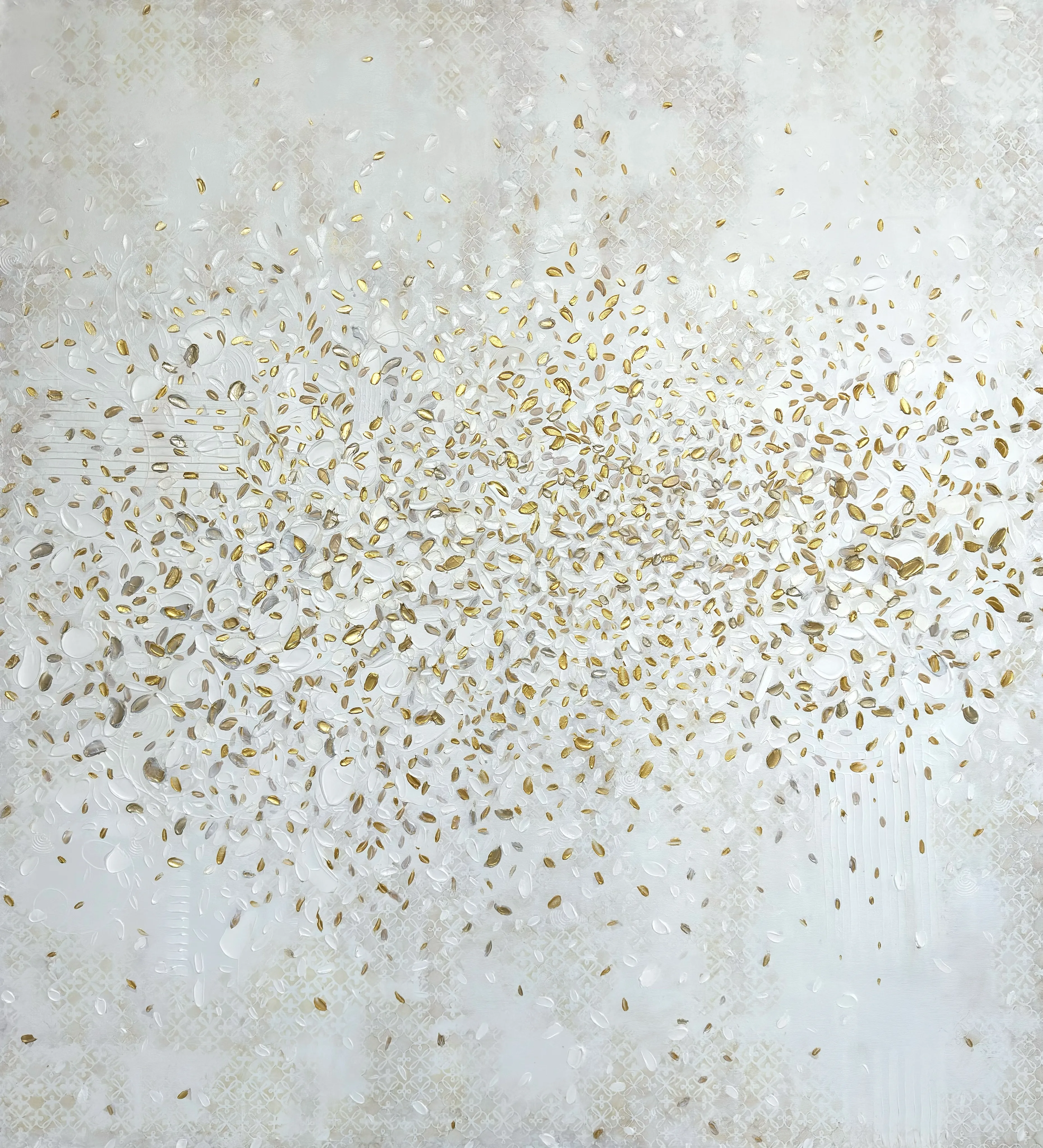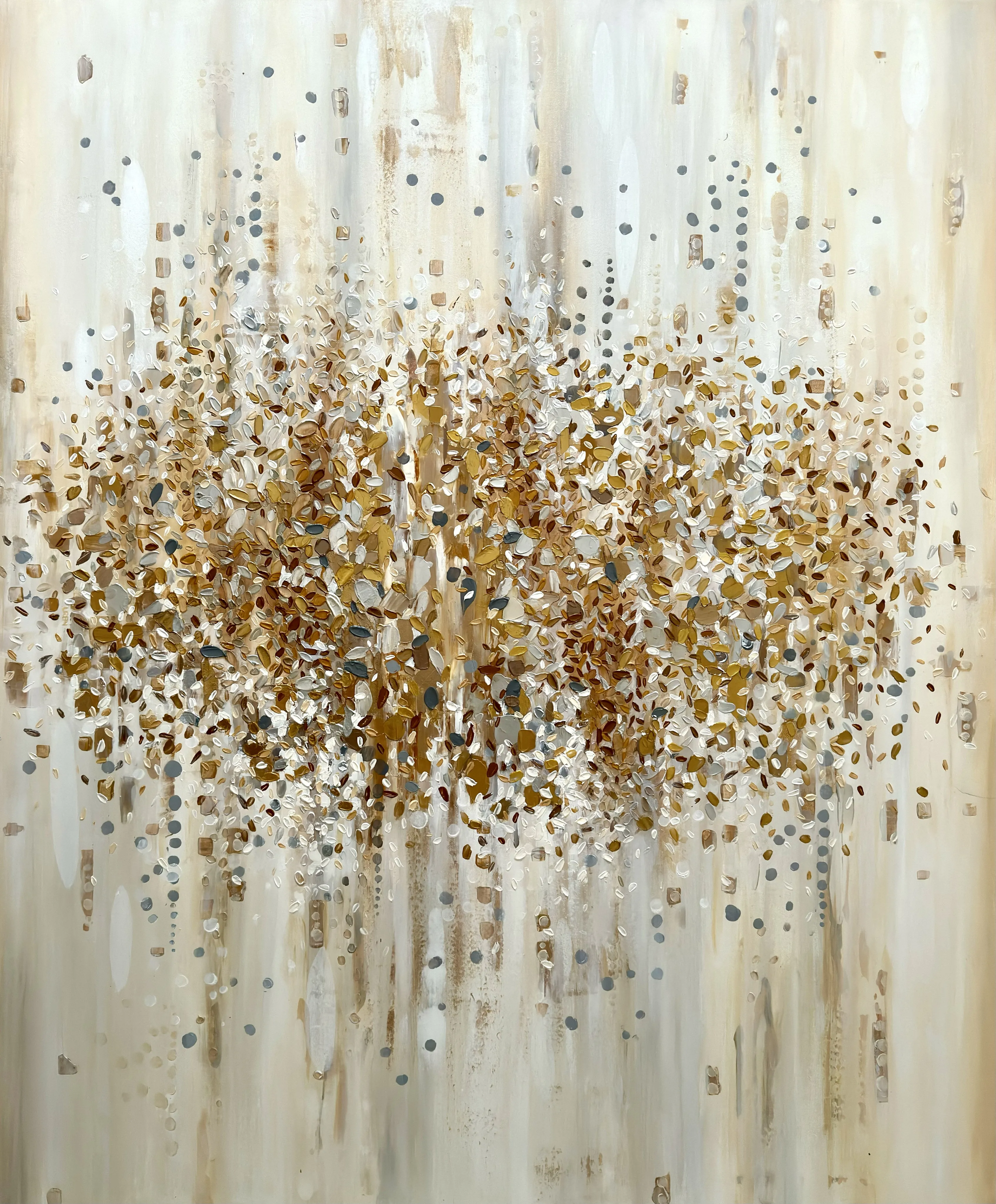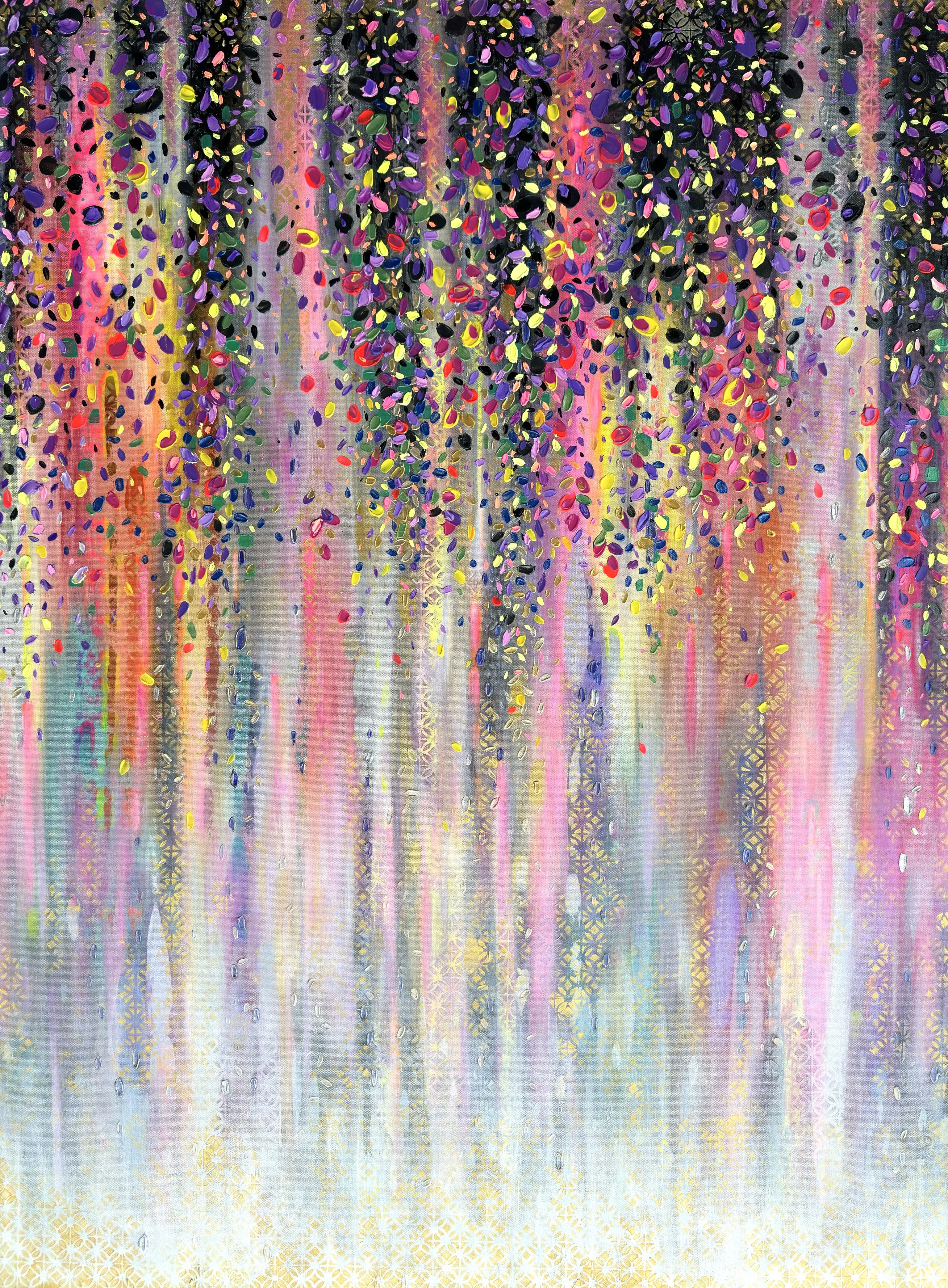 Colorful Alchemy generates a colour-driven energy that moves through the canvas and interacts with the viewer, merging chromatic forces into an atmosphere conveyed by the artwork within the space.