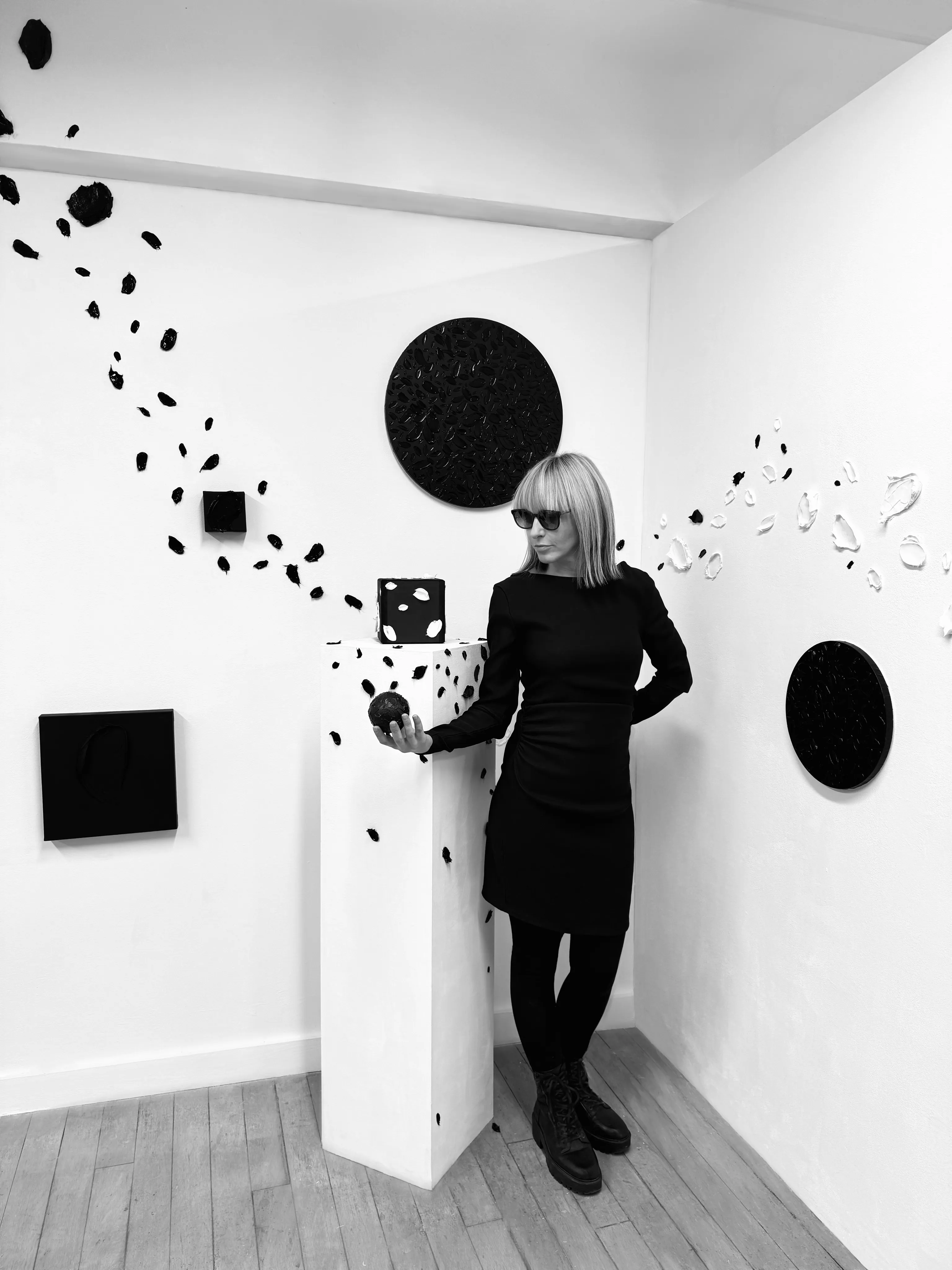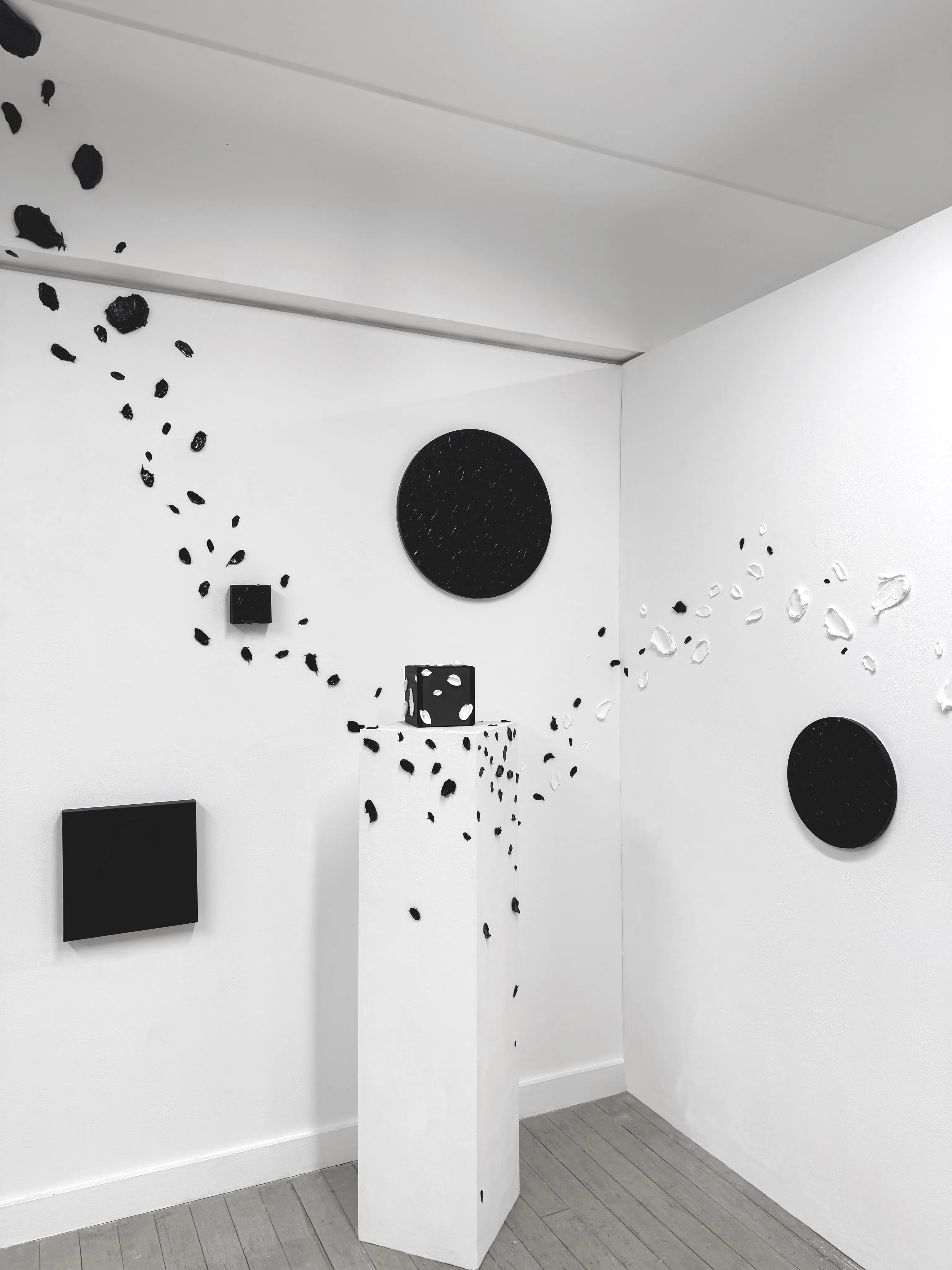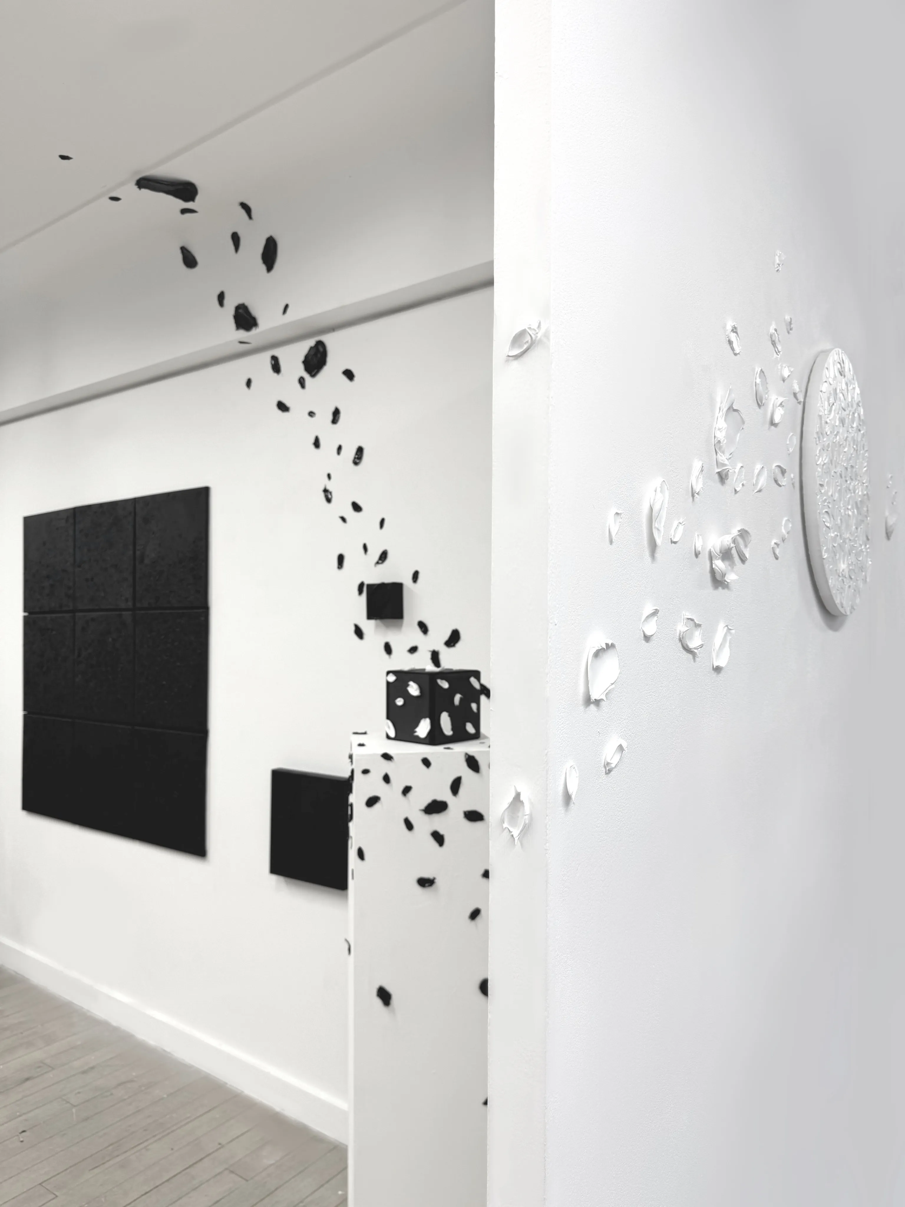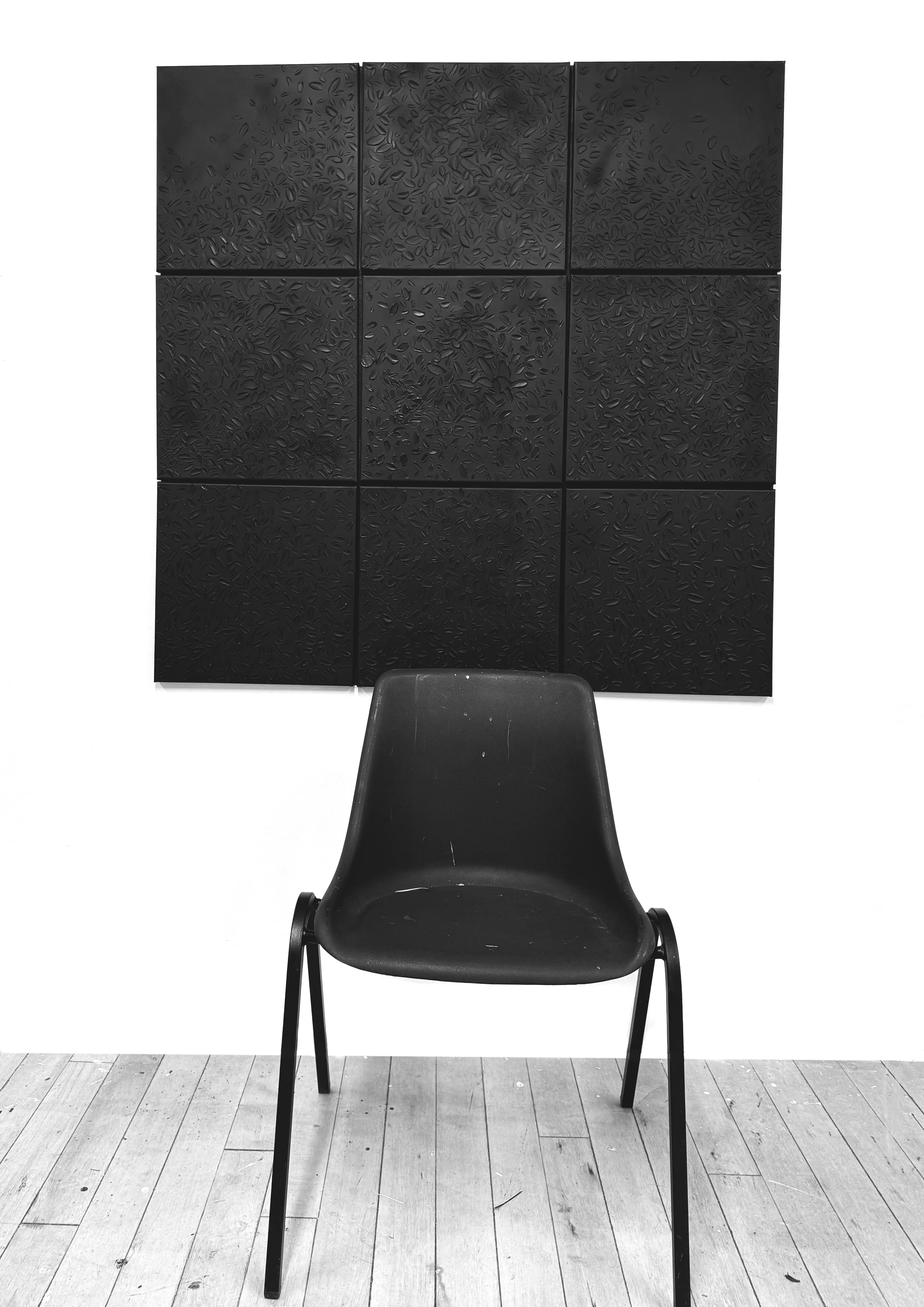 “Expropriated Space “explores the relationship between boundaries and freedom through various forms and mediums. The square canvas symbolizes psychological limits, while black represents security and focus. The stroke, as an idea breaking free, embodies the evolution of thoughts and the breaking of constraints. The stroke extending beyond the canvas symbolizes liberation and the expansion of possibilities, emphasizing the continuous journey towards infinite perspectives and new paths.